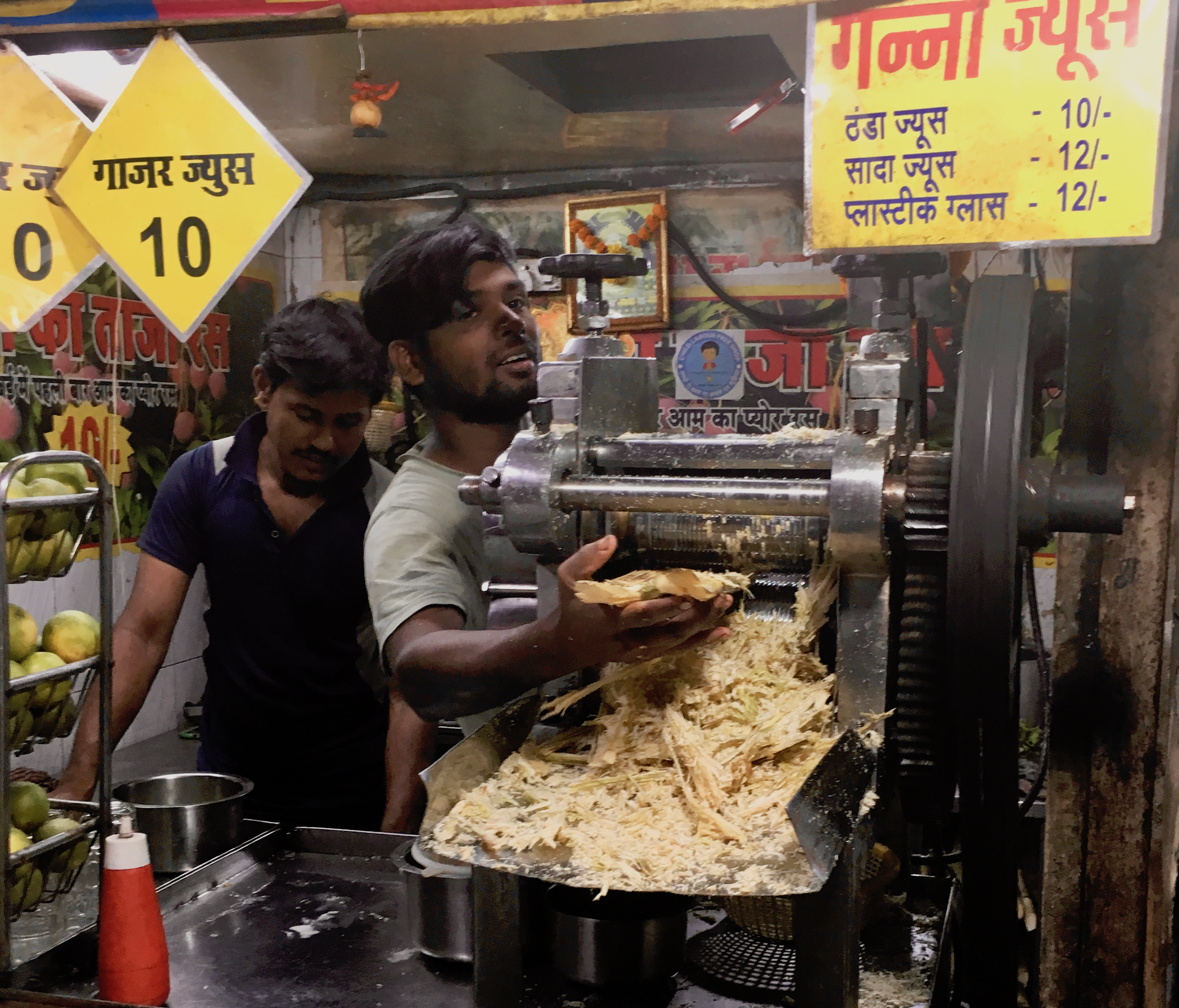 Finally, here's a juice vendor, in this case extracting the sap from sugar cane.