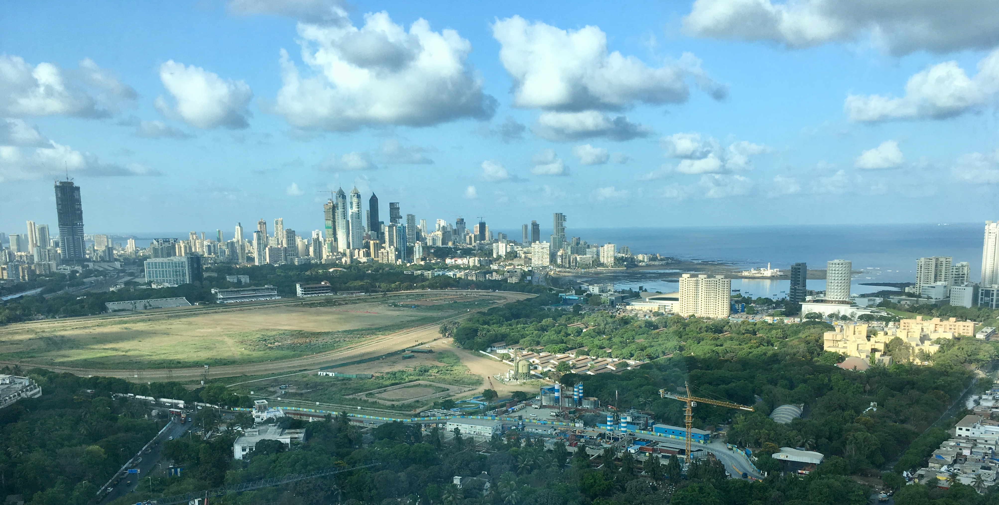 Traveling to this meeting also presented a brief chance to explore Mumbai. Here's one view of the Mumbai skyline. In the foreground you can see a race course, and in the background, the Arabian Sea.