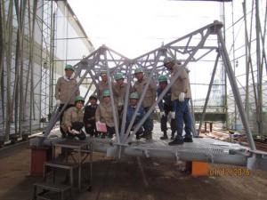 The test bed structure is a prototype that was welded together by Hitachi Zosen, which is under contract for the fabrication of Mitsubishi’s design of the telescope structure. The structure has just arrived in California from Japan, and is being prepared for installation in the laboratory. You can read more about this in the complementary news story on these TMT web pages.