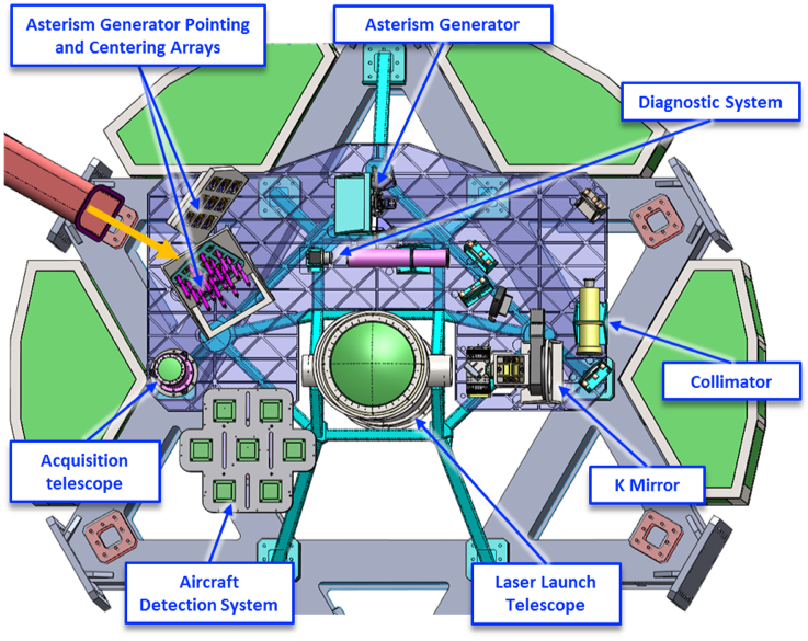 You can see that there are multiple components all located together. Asterism, for example, here refers to the artificial constellation of guide stars that we’ll be projecting onto the sky. We’ll leave a more detailed description of the laser guide star system to a future blog entry.