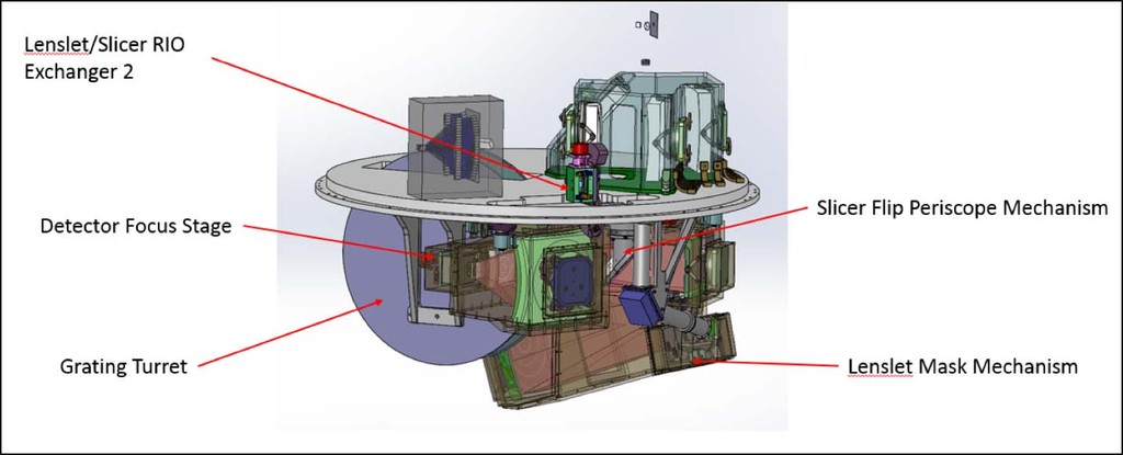 Opto-mechanical design of the IRIS Integral Field Spectrograph subsystem, shown with the slicer and the lenslet components.