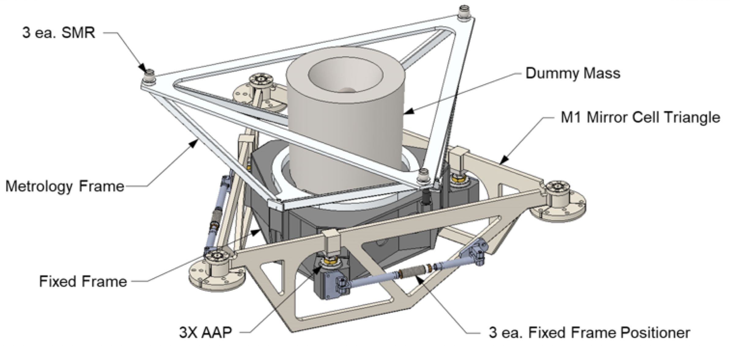 Each M1 segment will be supported by a fixed frame whose position will be measured by the GMS. Each fixed frame will be loaded with a mass simulator to model the deflection caused by the final segments and their support assemblies. In order to allow the SMRs to be visible above the segment dummy masses, SMRs will be mounted onto a subsidiary frame called the Metrology Frame, which will be seated on the fixed frames. The Metrology Frame has been designed to be light, stiff, and thermally stable, and is made of special low thermal expansion carbon fiber composite tubing. GMS will also measure the outer edge of the assembled M1 mirror by using SMRs mounted in machined pockets on the perimeter of M1.