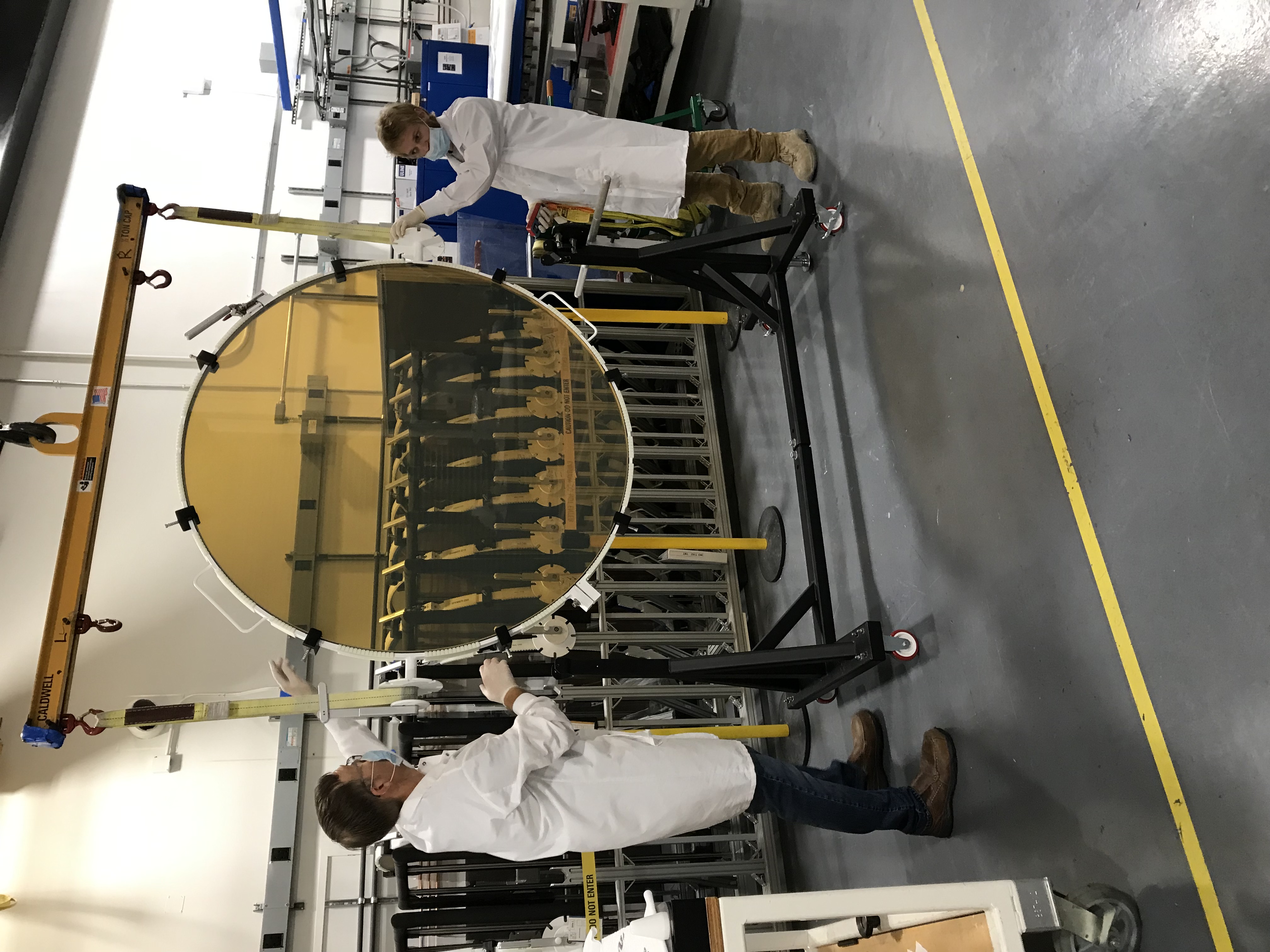 TMT M1 polished roundel manufactured at Coherent, August 2021 - Secure handling of a finished roundel in the preparation for transportation to TMT’s warehouse. Image credit: TMT International Observatory