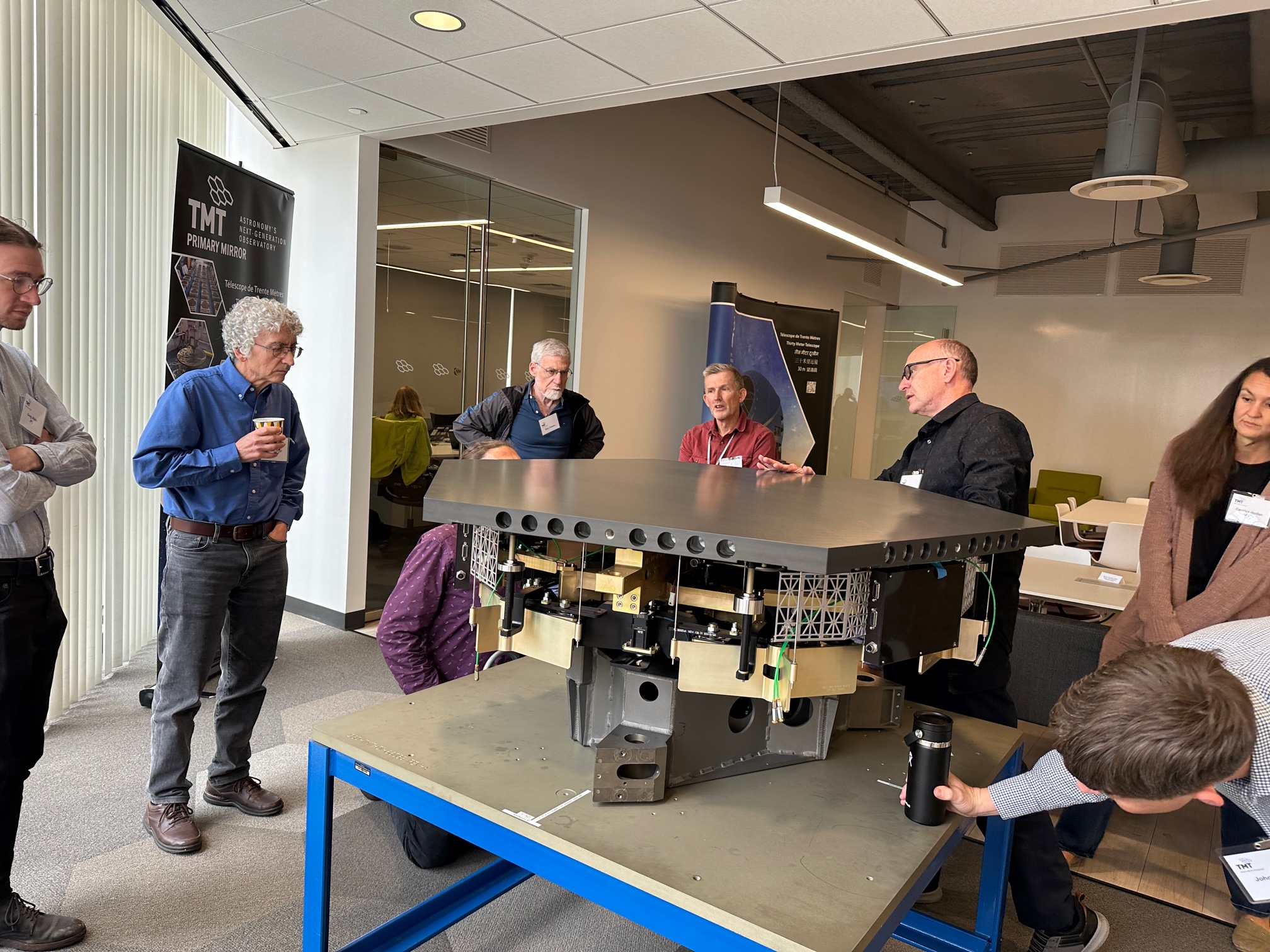 TMT’s Alignment and Phasing System team, reviewers, and observers at the TMT Project Office in Pasadena on 11 May 2023. The TMT Alignment and Phasing System includes all the necessary hardware, software, and interfaces to the Telescope Control System and the telescope's primary, secondary, and tertiary mirror control systems required to accomplish precise alignment of all TMT’s mirrors. The system will have the capability to adjust all 492 primary segments so they behave as a single mirror 30 meters in diameter.