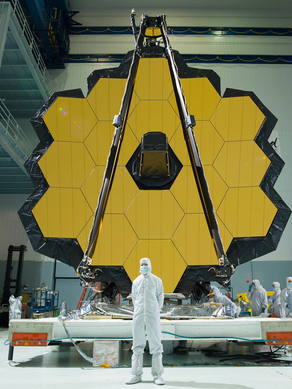 Figure 1. Large telescope mirrors, such as the James Webb Space Telescope primary shown here, are often composed of numerous hexagonal segments placed close together (within 2 mm). Image courtesy of NASA Goddard Space Center.