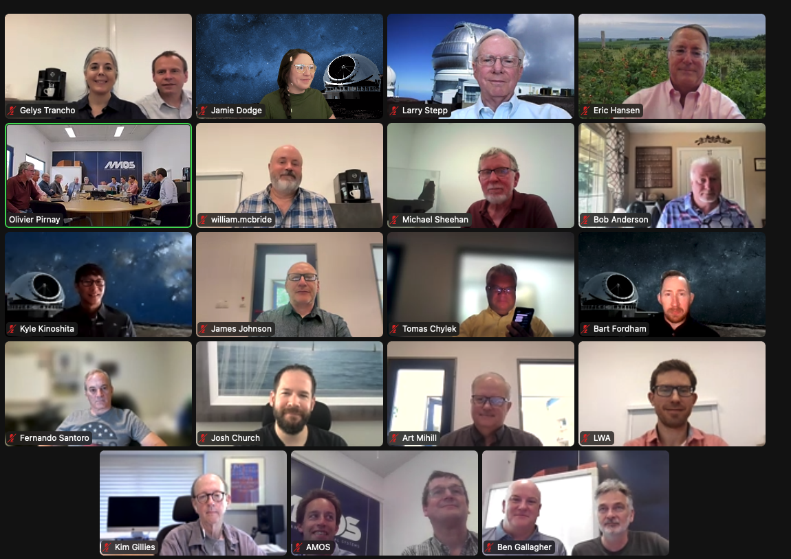 TIO representation at AMOS included Art Mihill (M2SSP work package manager), Ben Gallagher (telescope optics group leader), Dr. Gelys Trancho (Review Chair, project systems engineer), Mike Sheehan (reviewer, enclosure group leader), Jimmy Johnson (reviewer, telescope controls group leader), Tomas Chylek (reviewer, sr. opto-mechanical engineer), and Eric Hansen (observer, deputy project manager and telescope department head). An external reviewer, Bill McBride from NOIRLab, also traveled to Belgium for this review. Larry Stepp, who previously led the TIO Telescope department, was an active reviewer through remote attendance. Other members from TIO Systems Engineering, Observatory Software, Telescope Structure, and QA/Safety teams participated remotely in design team and observer roles.