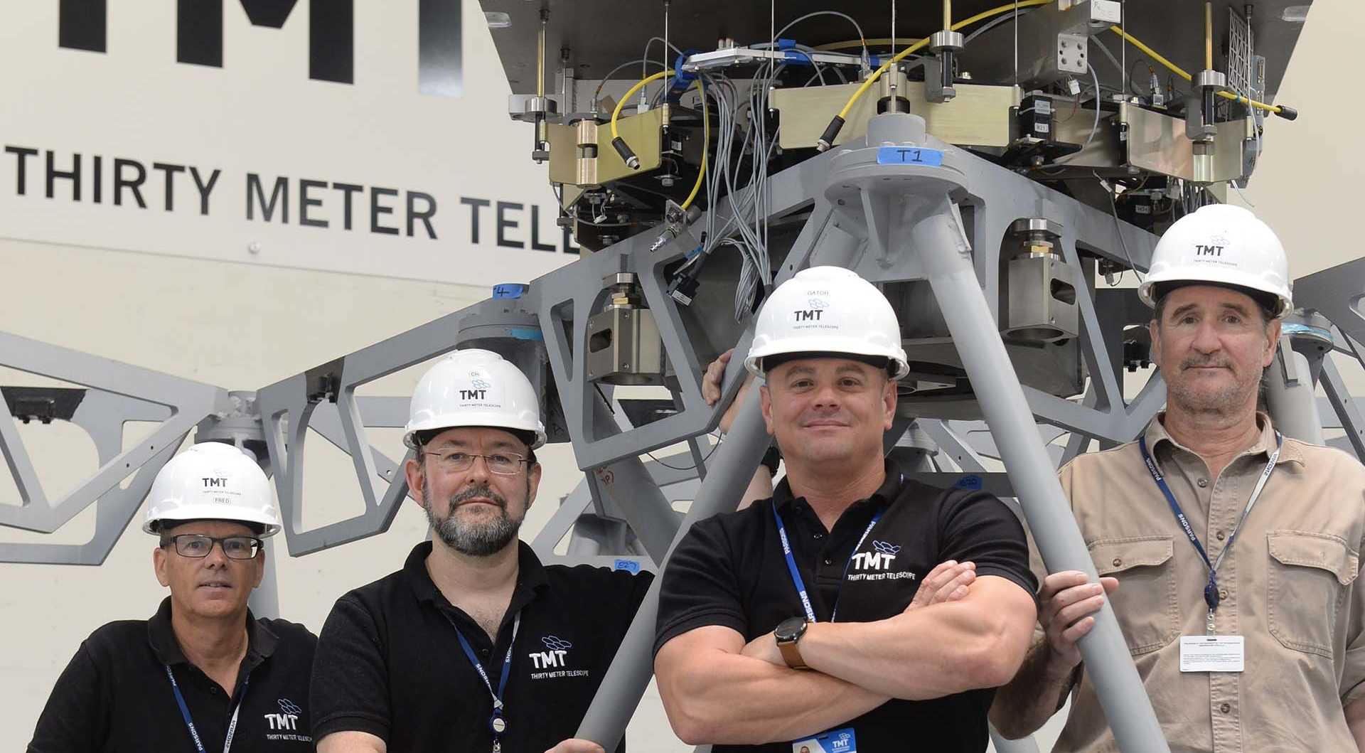 TMT engineers in the Monrovia laboratory close to TMT’s headquarters in California, after the installation of the first TMT Primary Segment Assembly (PSA) in the Multi-Segment Integration and Test Facility (MSIT).