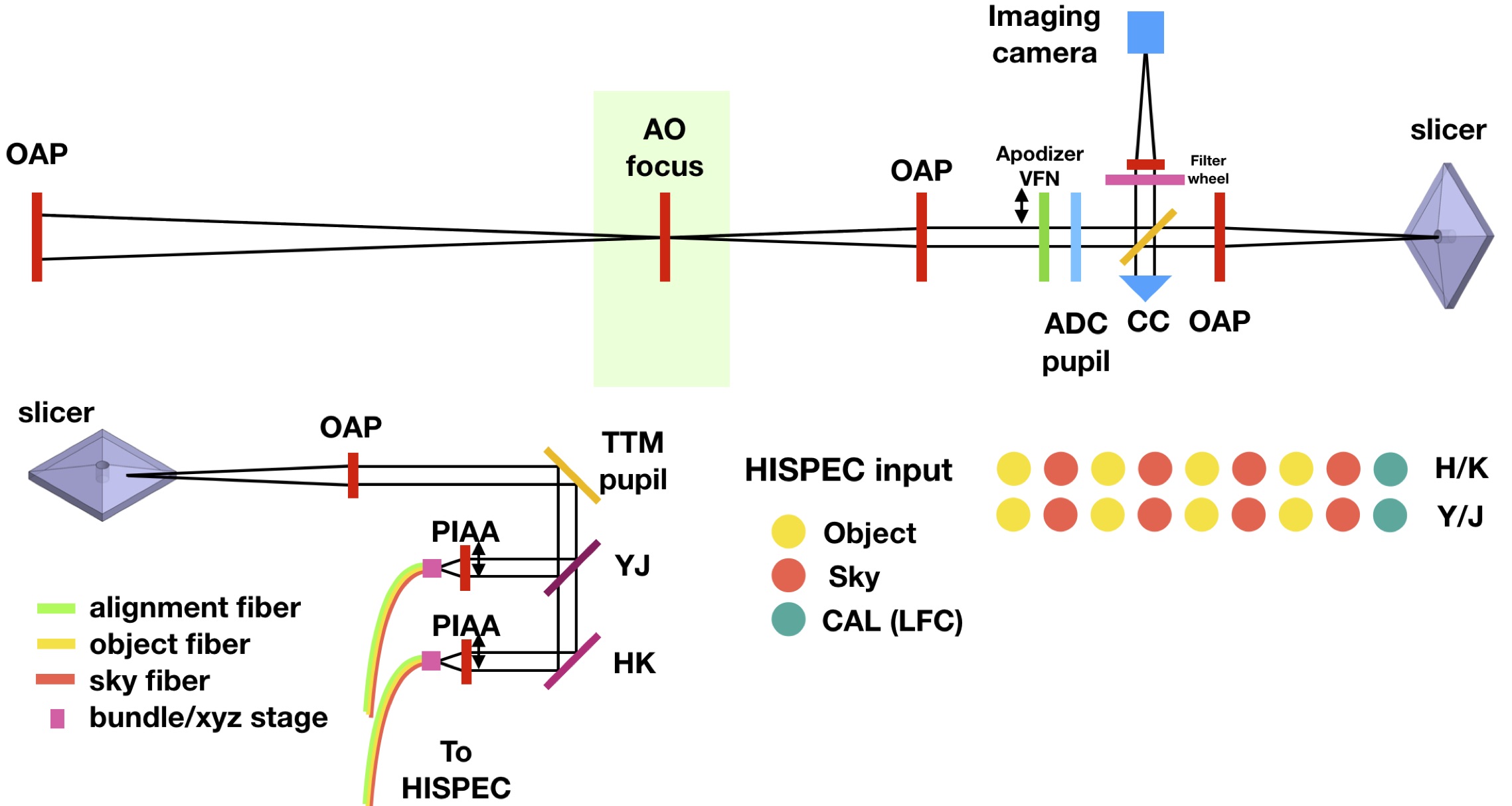 We recently built a fiber injection unit to link the Keck II Tele- scope adaptive optics bench to NIRSPEC, the current R ≃ 37,500 workhorse infrared spectrograph of the Keck Telescope (KPIC; Mawet et al., 2017). The target light is injected into a single-mode fiber and sent with minimal losses to NIRSPEC. The first assembly of the FIU (Fig. 2) focuses starlight from the AO system into single-mode fibers while the second formats the outputs of the fibers into the slit plane of NIRSPEC. MODHIS will leverage this recent development in fiber feeds. Integral field and multi-object capabilities could be provided by image slicing techniques and independent field steering mechanisms per slice.