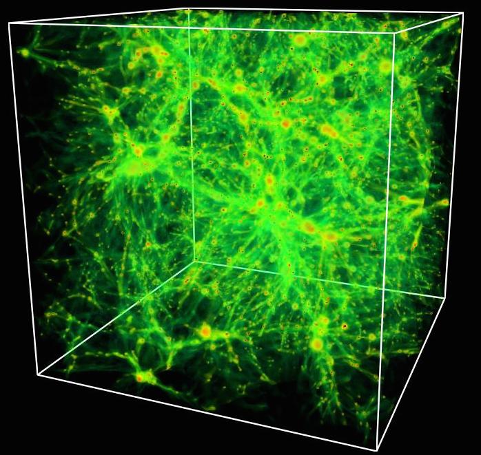 Dark matter structure at z ~ 3. TMT will probe multiple lines of sight using WFOS and background galaxies as sources. This will provide a more complete understanding of the baryonic power spectrum and interaction of the IGM with baryonic matter in galaxies. (Credit: R. Cen, Princeton U.)