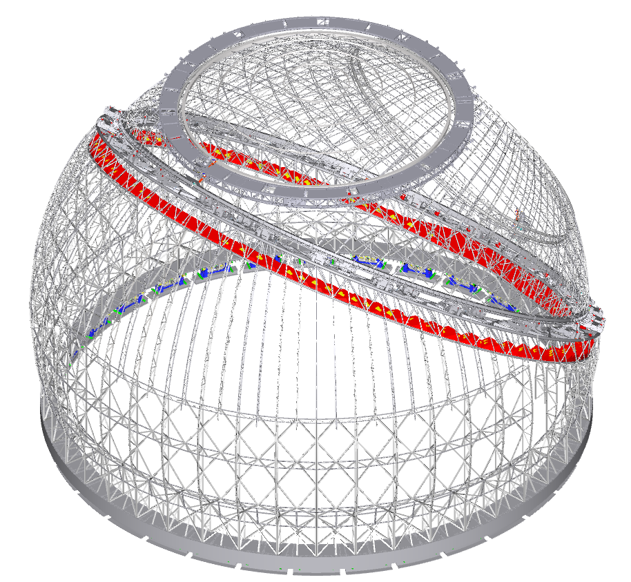 TMT has selected an innovative, structurally efficient calotte enclosure design that, by its spherical shape and circular shutter aperture, fulfills key functional requirements with minimal size and lower mass (and lower cost) than was possible for previous enclosure designs. Further information about the Final Design Phase of the Enclosure (completed in mid-2018) can be found in the Associate Project Manager Blog.
